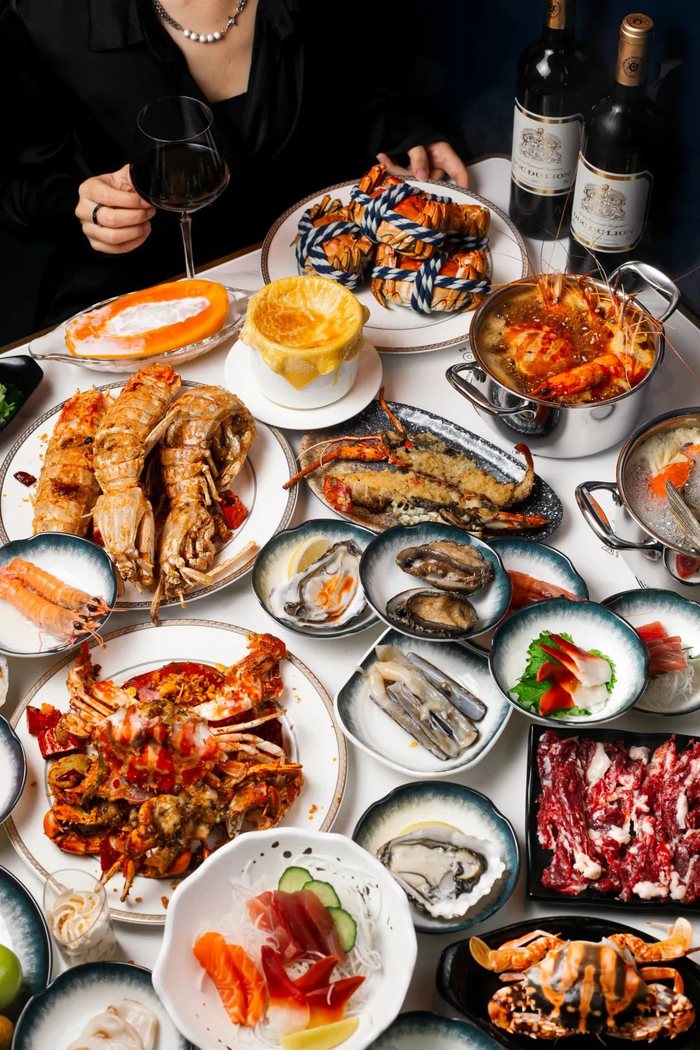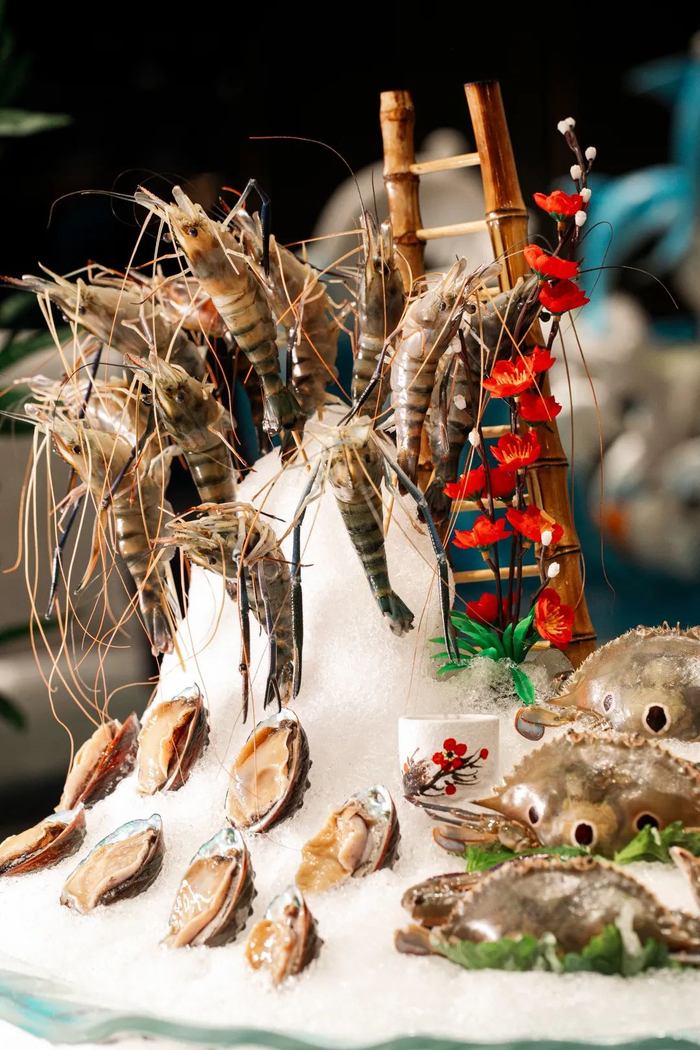 海鲜都是现杀现拿的,而且统统不限量,罗氏虾、膏蟹、鲍鱼...各个都身价不菲,真的吃一口就回本了。