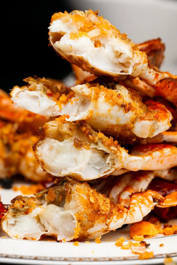 还能吃到跟小手臂一样大的皮皮虾,椒盐做法,里面满满的橘黄色的膏,吃上两只都要饱了。