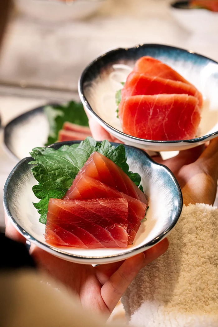 仙气满满的精致摆盘,太有仪式感了,光是看着都觉得微奢,一共8种刺身,扇贝、赤贝、甜虾、北极贝、鲷鱼...... 刺身柔韧甜美,只需要一丢丢芥末和特制酱油点缀,就能激发它本身的鲜美啦。