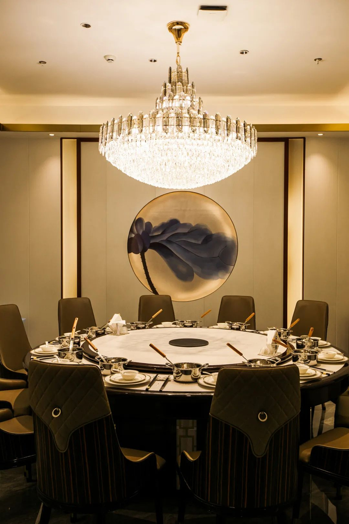 渔舶汇的包间装潢超级奢华,特别适合宴请。而且包间里的每道菜系都像精致的艺术品,它们就像是灵感的迸发与创作,在享受美味的同时还能看一场艺术展呢。