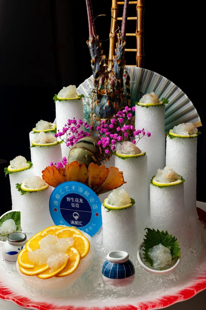 澳洲花龙是龙虾品类中的佼佼者!晶莹剔透的虾肉,蘸着日式酱油和芥末吃,入口层次丰富,鲜甜嫩滑,有一种诱人的鲜味。