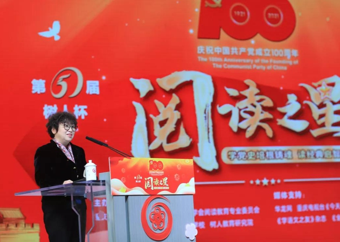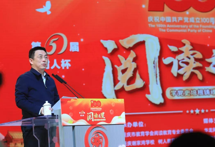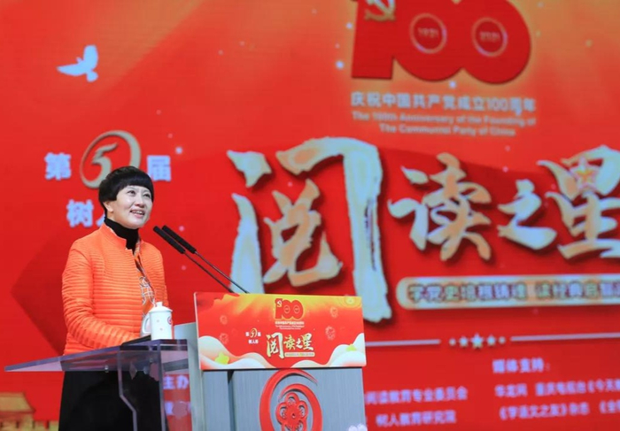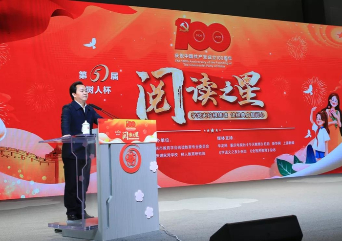 重庆市教育学会阅读教育专业委员会秘书长、树人教育研究院院长、重庆市政协委员王雁玲在开幕式上致辞,“人心如良苗,得养乃滋长。”她在致辞中回顾了“阅读之星”活动发展的5年历程,并表示,“树人杯阅读之星”作为给学生搭建的高规格阅读展示与交流平台,自举办以来,影响了重庆、四川、云南、甘肃、辽宁、贵州等多个省份数以万计的师生。他们在这个平台上实现了多姿多彩的阅读梦想,影响和改变了自己的学习方式和成长轨迹。