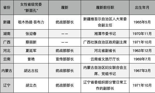 在胡立杰跻身省委常委前,最年轻的女性省委常委是蔡丽新,她出生于1971年10月,与胡立杰的出生年月相同。