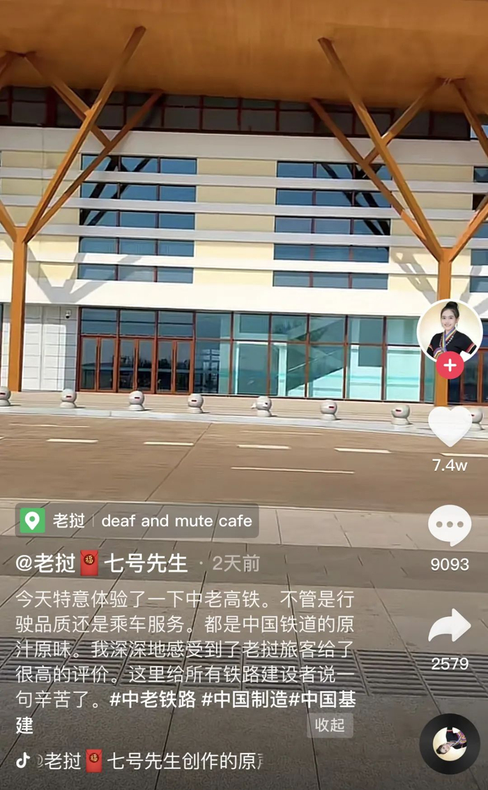 12月20日,一名在老挝从事短视频、直播行业的中国博主“老挝七号先生”在抖音发布了一则近6分钟的视频,他写道:“今天特意体验了一下中老‘高铁’。不管是行驶品质还是乘车服务,都是中国铁道的原汁原味。我深深地感受到老挝旅客给了很高的评价。在这里跟所有铁路建设者说一句辛苦了。”