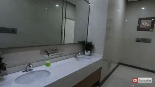 视频中,他称赞了候车大厅比室外凉快很多,还跑去逛了圈干净整洁的洗手间。