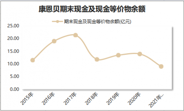 一言以蔽之,康恩贝目前不仅缺钱,而且还很缺钱。截至2021年三季度,康恩贝现金及现金等价物余额仅为9亿元,创6年来的新低。