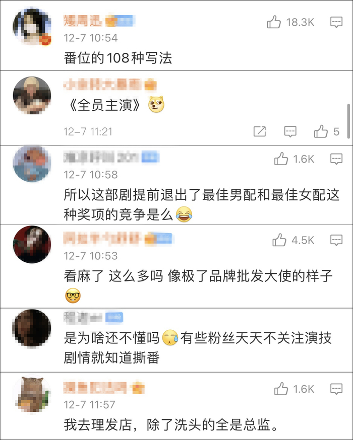 有人调侃,合着这剧没配角,数不清的头衔“像极了品牌批发大使的样子”,还有人想到了楼下的理发店,“除了洗头的全是总监”。