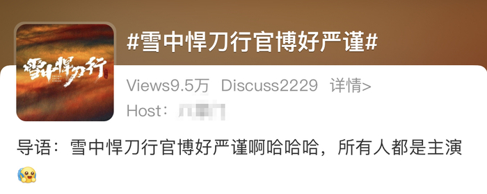 讽刺的是,12月7日,微博还出现了个营销“雪中悍刀行官博好严谨”的话题,但从网友的反应看,“严谨”和“离谱”还是有区别的。