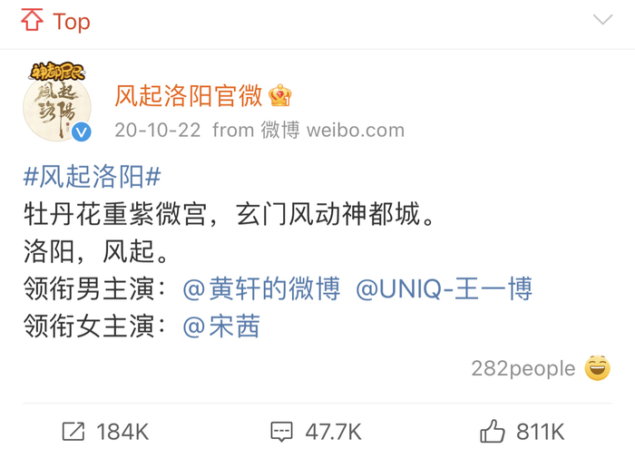 最近上线的《风起洛阳》,不仅分了“领衔男主演”和“领衔女主演”,官微还直接把这条番位博置顶了,“求生欲”刻进DNA。