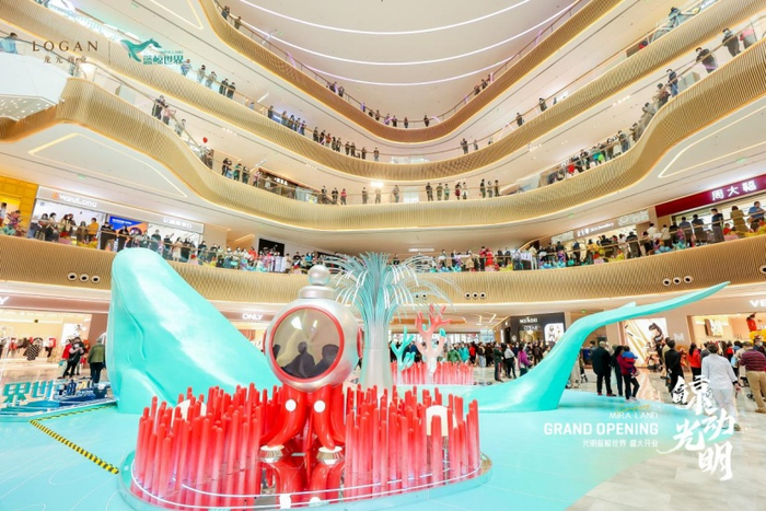 作为主题IP购物中心,光明蓝鲸世界聚焦“Wonderland奇境、Happiness欢乐、Abundant丰富、Link连接、Explore探索”五大基因,以其特有的IP属性为基底组建品牌矩阵,引入超220家品牌,其中30%为光明首店,60%为新形象店,网红流量品牌达30%。