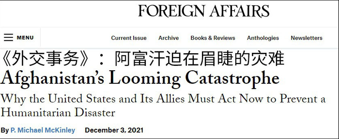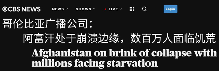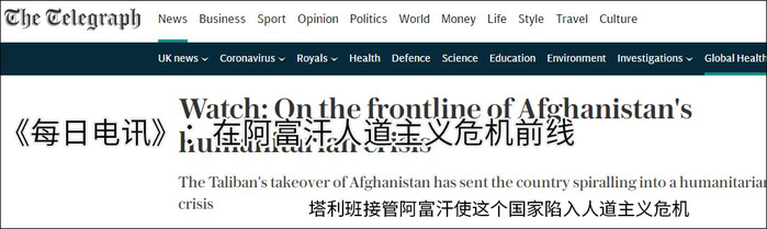 《每日电讯》直接在副标题上明示“塔利班接管阿富汗使这个国家陷入人道主义危机”;哥伦比亚广播公司用“迫使塔利班谈判,但谈判尚未进行”来解释美国对阿富汗资金的封锁;《外交事务》则干脆直接写道:“美国及其盟友在塔利班政府为妇女、女童和少数民族的权利提供保障并明确切断其与国际恐怖主义的联系之前,试图否认其合法性或提供资金,这是正确的。”