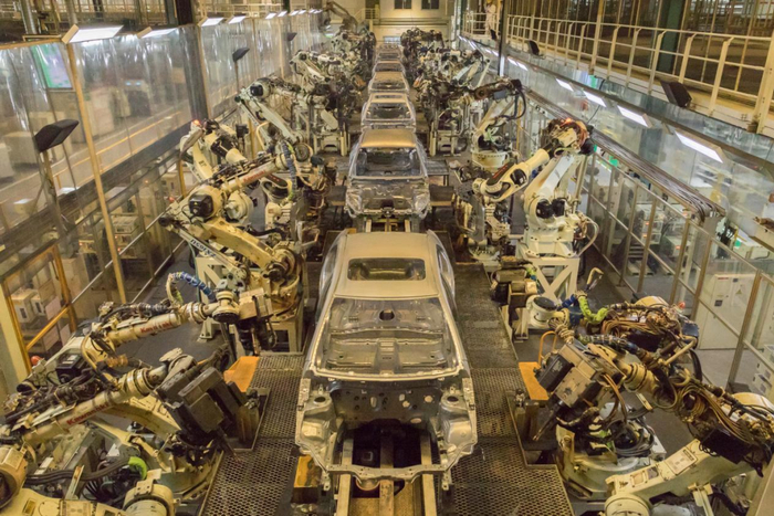 在焊装车间,广汽丰田全数采用高精度焊接机器人打点,保证了焊点的精度与强度,焊装达到行业领先水平。