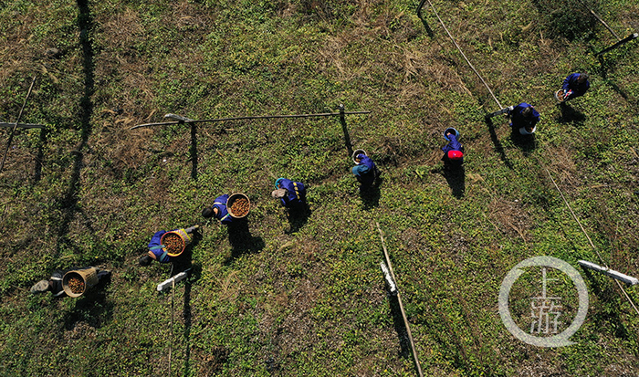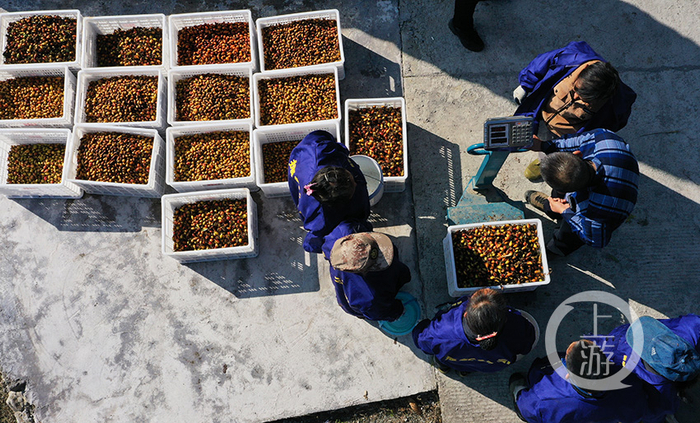 基地旁,振兴(重庆)农业科技开发有限公司的工作人员在现场设立了金樱子临时收购点,村民们采摘的金樱子可以就近交售,村民吴相全也拉着采摘的金樱子前来交售,“我种了10亩金樱子,今天卖了112斤,收入了672元,还能摘1000斤左右。”吴相全高兴地说。