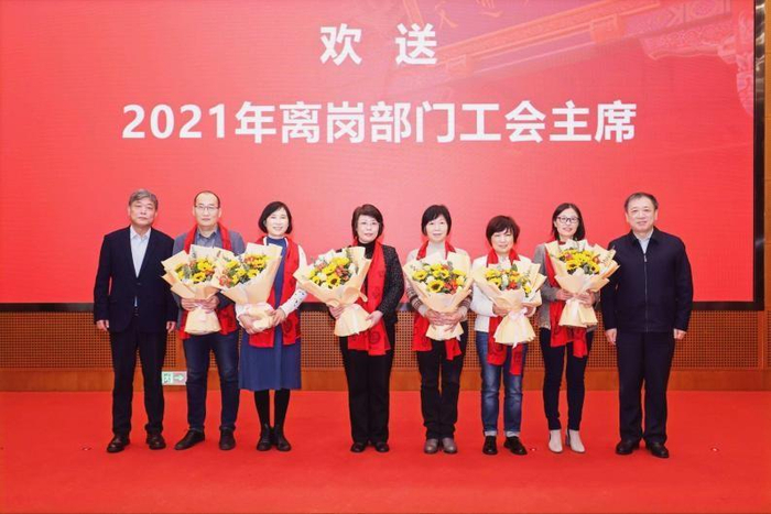 大会还欢送了离岗部门工会主席余新丽、杨一帆、谢立平、邢连清、喜苏南、张健,感谢他们为学校工会工作发展作出的贡献。