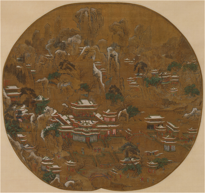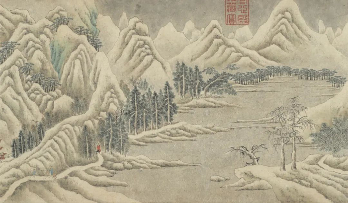 传唐人李思训绘《京畿瑞雪图》。