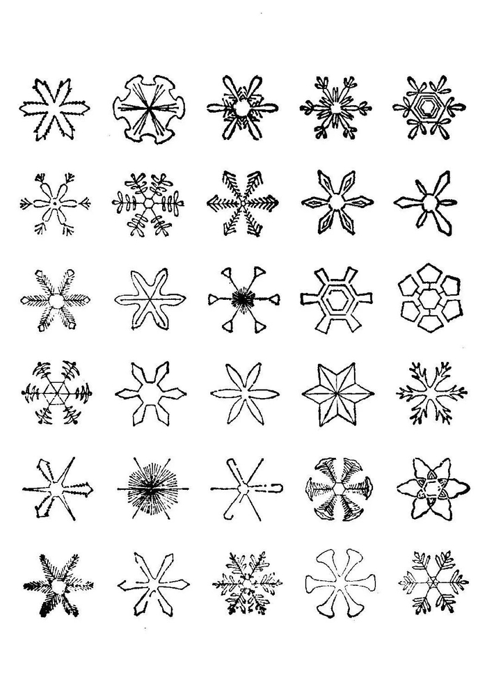 “这些雪花,全是由小冰花组成的,每一朵小冰花都有六片花瓣,有些花瓣像山苏花一样放出美丽的小侧舌,有些是圆形的,有些又是箭形的,或是锯齿形的,有些是完整的,有些又呈格状,但都没有超出六瓣型的范围。”