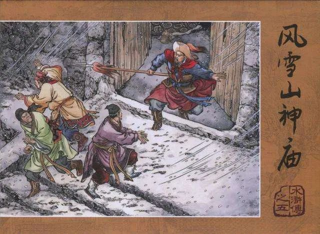 《林教头风雪山神庙》是《水浒传》中最经典的一折。因为没找到众位好汉赏雪的图片,用它代替也不差。