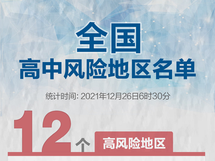 自2021年12月26日6时起,将讷河市长发镇建设村调整为低风险地区。调整后,黑龙江省全域为低风险地区。目前,全国现有高风险地区12个、中风险地区142个。详情>>