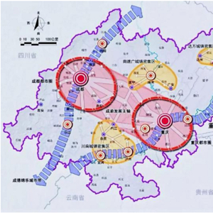 此次规划的范围包括重庆市的中心城区及万州等27个区(县)以及开州、云阳的部分地区,四川省的成都、自贡等15个市,总面积18.5万平方公里,常住人口超9600万。