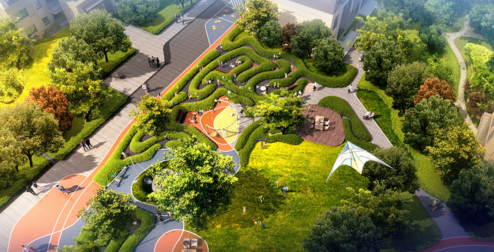 作为“园林大师”,龙湖在龙湖北辰·揽境内打造了具有互动性、参与性、交融性及功能性的“五维景观”,其中,X-SPACE无限欢乐花园派体验社区运用借景·造景的手法,以围合式布局,打造出一个“森林里的社区、社区里的森林”。