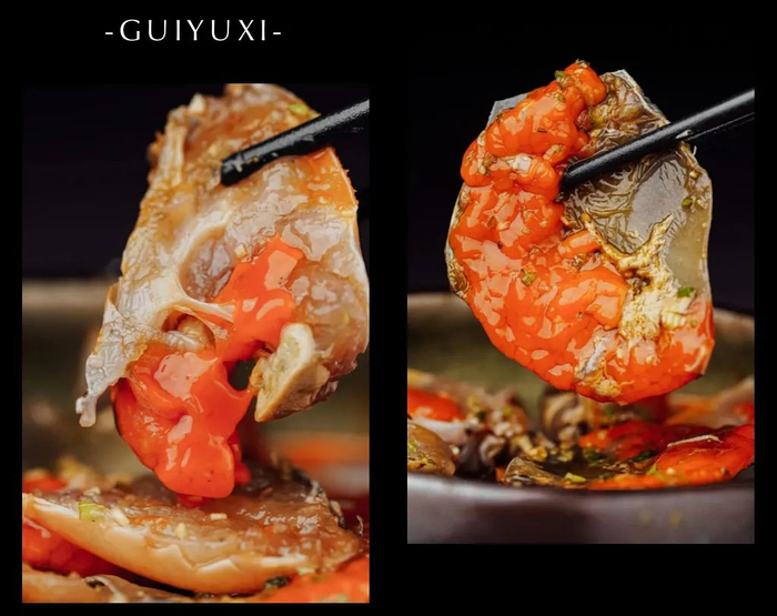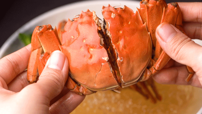掰开都是金灿灿的蟹黄,满屏的灵魂膏黄暴击,蟹肉充分地吸饱花雕酒的汤汁,真的是太绝了,喜欢吃螃蟹的人,吃上一口就被征服了!