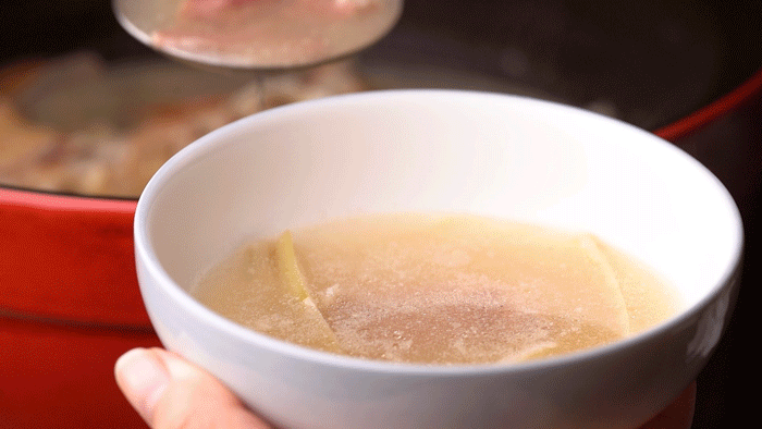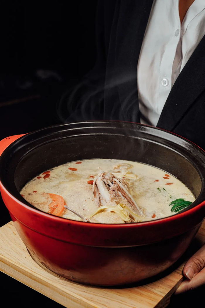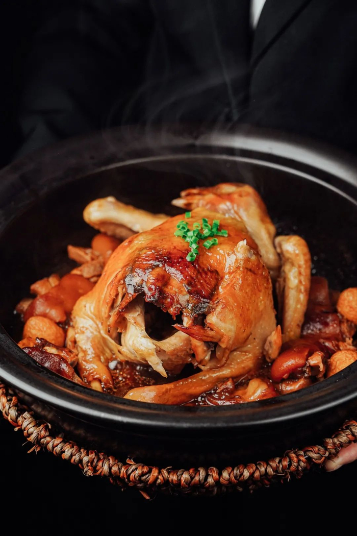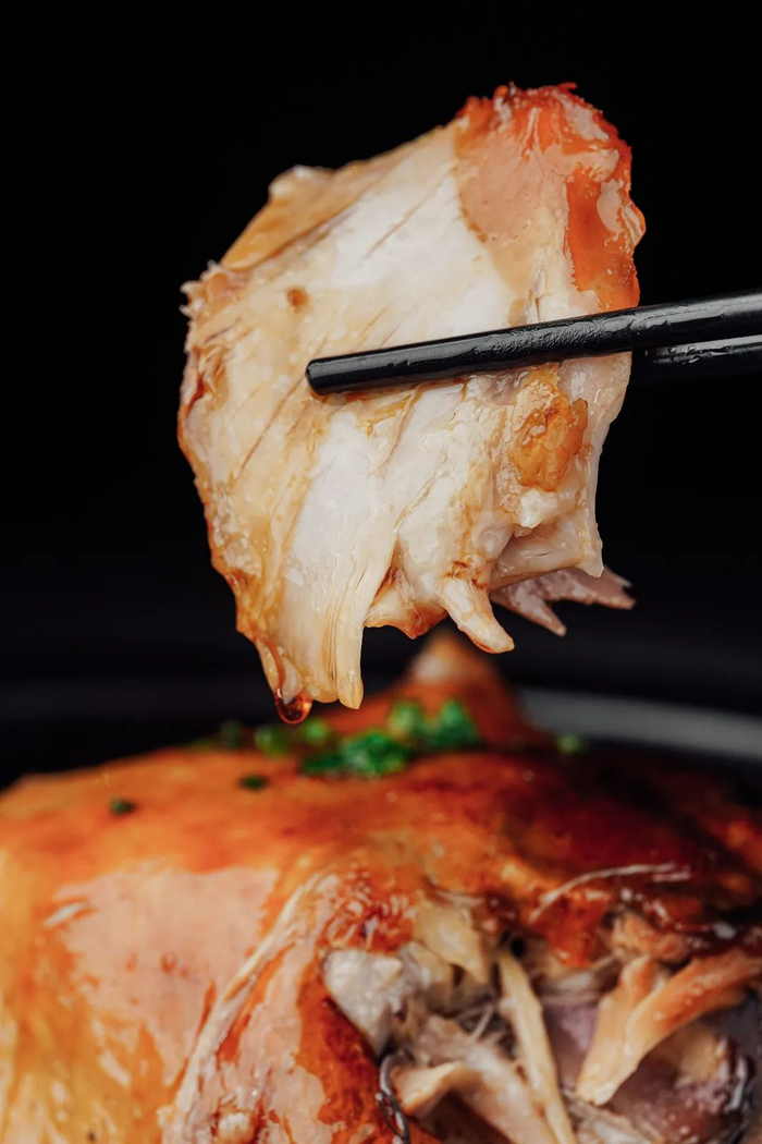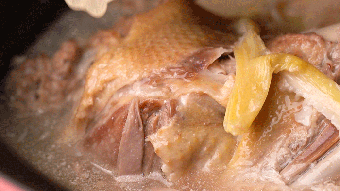 神仙鸡十分讲究,火候不够则肉不入味,煮久了则肉柴,神仙鸡就是这么“娇贵”,厨师都要在旁边把关。鸡肉肉质被煮得刚刚好,肉质轻轻一撕,即可脱骨,吸满汤汁!