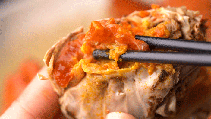 入口微甜,蟹黄沙沙的颗粒感,蟹肉均非常饱满,肉质鲜嫩、好吃到舔手指,一整个爱住!