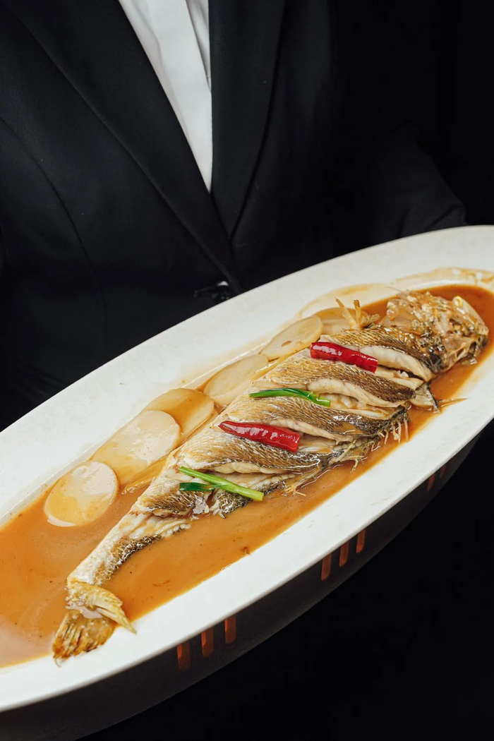 在浙江菜中,年糕碰上黄鱼,双重好彩头,寓意着“年年有鱼”。精选从江浙运来的台州半野生黄鱼,每一条鱼都有1斤多的重量,铺上浙江粳米年糕,经过家烧制作,淋上浓稠的酱汁,香气弥漫而来!