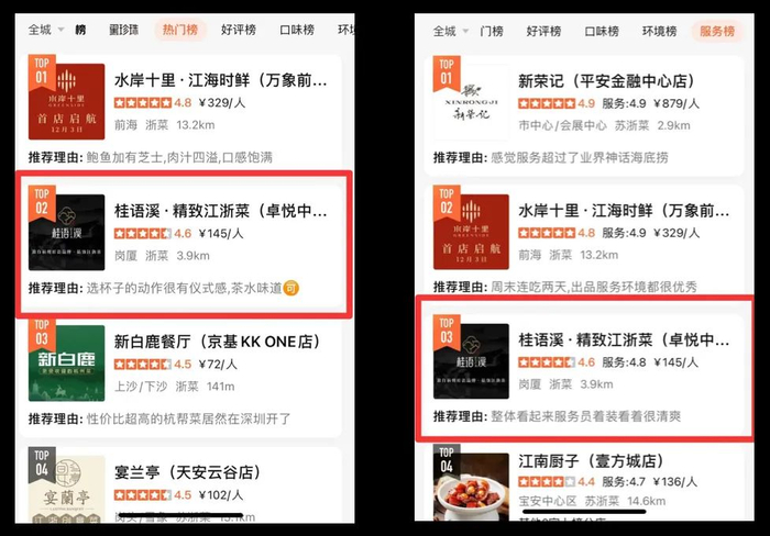 开业不到两个月就榜上有名,冲上热门榜和服务榜,桂语溪连工作日都座无虚席,每天位置都需要定时抢先预订,门口还有不少客人排队,不愧被誉为江浙菜一匹黑马,现在4折开吃,就在卓悦中心,冲鸭!