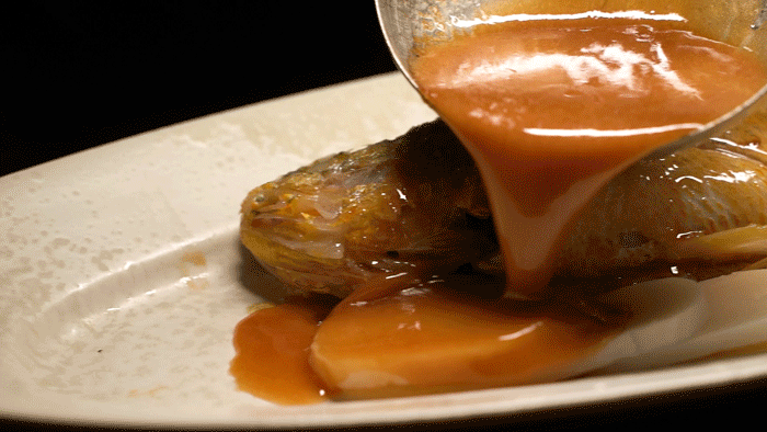 整道菜看起来金灿灿,十分有食欲,尝上一口,白色的鱼肉裹上酱汁,鱼肉肉质细腻,出其不意的鲜嫩爽滑,年糕吸饱汤汁也更显诱人!