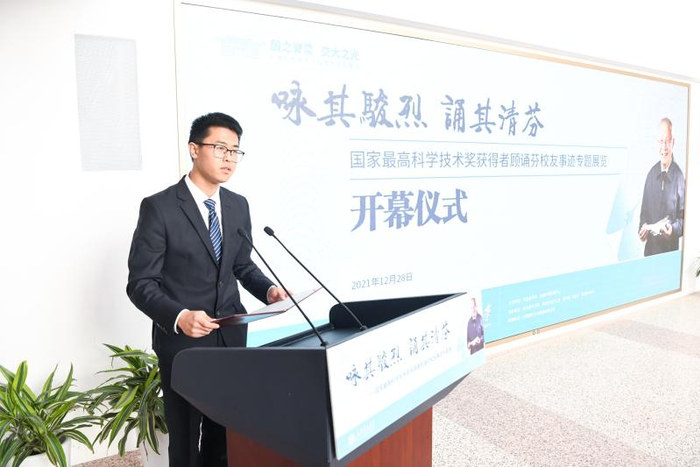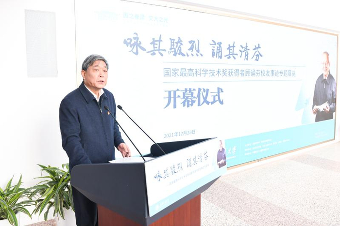 12月28日,为彰显示范引领作用,大力弘扬新时代科学家精神,“咏其骏烈,诵其清芬——国家最高科学技术奖获得者顾诵芬校友事迹专题展”在包玉刚图书馆正式开幕。上海交通大学校长、党委副书记林忠钦院士,上海交通大学党委常委、副校长张安胜,上海交通大学党委副书记、副校长王伟明,上海交通大学党委常委、宣传部部长胡昊,以及来自各相关部处、学院的师生代表出席。开幕式由王伟明主持。