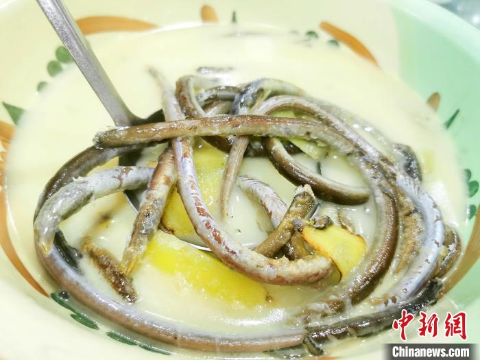 “老板,你打电话预订的血鳝炖汤已炖好。昨天,附近广西籍渔民在白宵一带海域用笼仔捕获后送过来的血鳝有小半筐,师傅从中挑拣出个头最粗大的那几条血鳝,搭配猪骨、药材炖的汤。还需让师傅帮你们煮一锅血鳝饭吗?”近日,广东台山市赤溪镇白宵钓鱼农庄服务员在鱼池帮客人点菜时称,目前该农庄本地血鳝的价格为每公斤356元,多数推荐客人用其烹制血鳝饭、椒盐血鳝、煲仔焗血鳝、血鳝煮酒等菜式。其貌不扬的血鳝,个头细小且价格较贵,但相传有补气养血、健胃明目等食疗功效,在广东沿海城市“征服”了不少食客的味蕾。