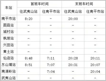 自南平市站起至武夷山站