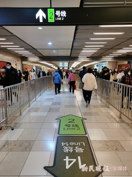 换乘时间多少?客流多不多?标识清晰否?……今天一大早,本报派出5路记者,体验14号线的早高峰,实测所有13座换乘站的换乘时间。