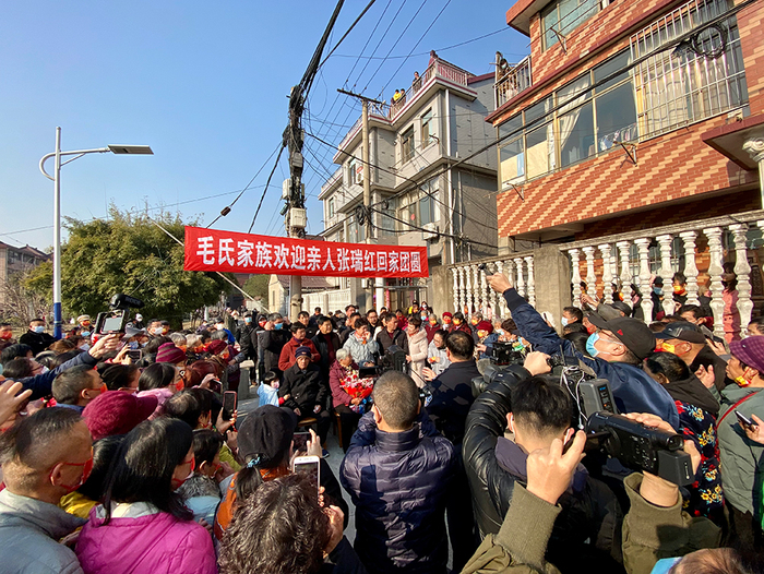 12月30日,在宝山区月浦镇长春村,毛家父母及家人就早早地等在家门口,盼望着亲人的归来。9:30,张女士在民警的陪同下,在不远处下了车,她急步奔向亲人,一家人紧紧相拥在一起。