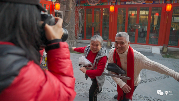 随着北京冬奥来临,薛晓萍改编经典名著,结合大家各自的冰雪回忆,排演了一部微电影《冬奥情暖四合院》。两位结婚41年的老人年轻时就热爱冰雪运动,这次拿出珍藏着的年轻时用过的冰鞋当道具,在微电影里体验了一把冰上求婚梦。