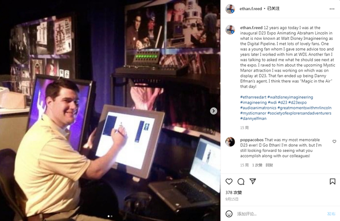 里德很喜欢在自己的社交页面上与粉丝们分享自己创作达菲家族角色的心路历程,或者分享迪士尼工作的回忆,每个他喜爱的迪士尼角色生日,他都不忘发文祝贺。