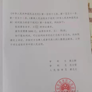 2021年9月1日,田丰收到了徐水区法院作出的(2019)冀0609民初2311号判决书,驳回诉讼请求。