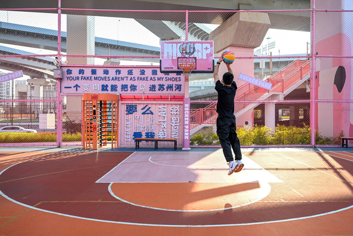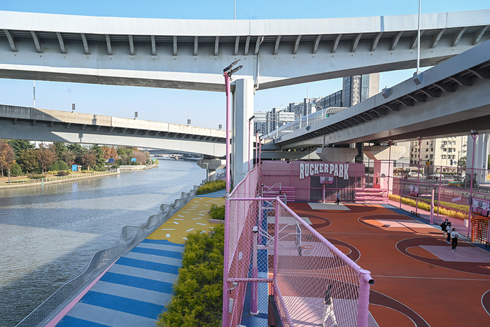 12月的一个午后,在苏州河长宁段中环立交桥下,暖暖的阳光斜照在粉红色的球场上,36岁的王先生和朋友玩得正欢。“我小时候就有个愿望,在苏州河边能有个篮球场,可以在球场里打个球,出身汗。”苏州河伴随着王先生成长,儿时梦想如今照进了现实。