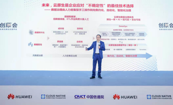 本次峰会上,华为云CTO张宇昕在题为《行动正当时,由云原生思维到践行云原生》主题演讲中指出,云原生作为一种先进的思维,是企业应对“不确定性”的最佳技术选择。云原生作为一种先进的思维,全数字化、全云化、AI驱动、一切皆服务是它的核心要素。