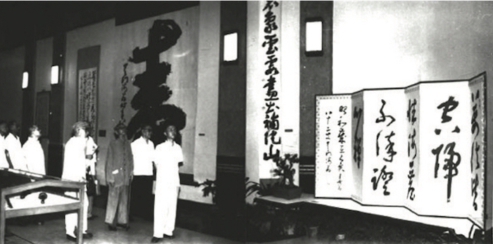 此次展览的文献资料还得往前追述到1957年至1961年的筹备阶段。在1957年3月8日,中国人民政治协商会议上海市委员会美术组召开的书法座谈会上,丰子恺主持会议,沈尹默、王福庵等二十多人出席会议,会上一致认为“书法作为一种艺术,主张成立书法家学会,举办展览”,会上书法家们希望把书法艺术恢复起来,并建议成立书法家的组织,展开各种活动。同年5月,白蕉在《解放日报》发表文章《要重视书法和金石篆刻》,呼吁支持上海书法团体的筹备建立。之后的1959年,中国人民政治协商会议第三届全国委员会在北京召开,沈尹默在会议期间向陈毅建议成立书法篆刻组织。