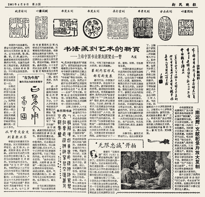 《新民晚报》1961年4月9日第2版,《书法篆刻艺术的新页——上海中国书法篆刻展览会一瞥》