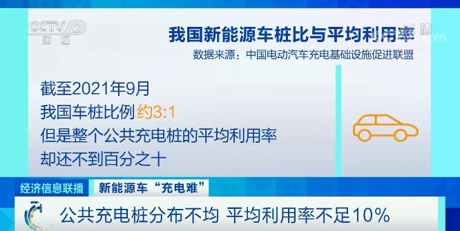 数据显示,截至2021年9月,我国车桩比例约3:1,但是整个公共充电桩的平均利用率却还不到百分之十,这主要是因为充电桩的分布不均。