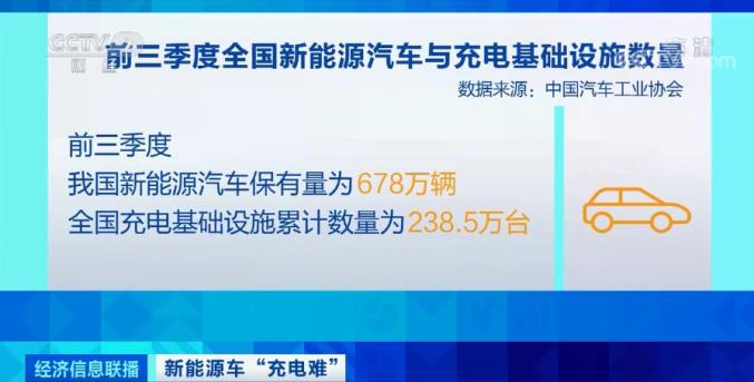 据中国汽车工业协会统计,前三季度,我国新能源汽车保有量达到678万辆,全国充电基础设施累计数量为238.5万台。1-11月,新能源汽车销量为299万辆,全国充电基础设施的增量为70.4万台。充电设施的增速远远赶不上新能源汽车的增速。