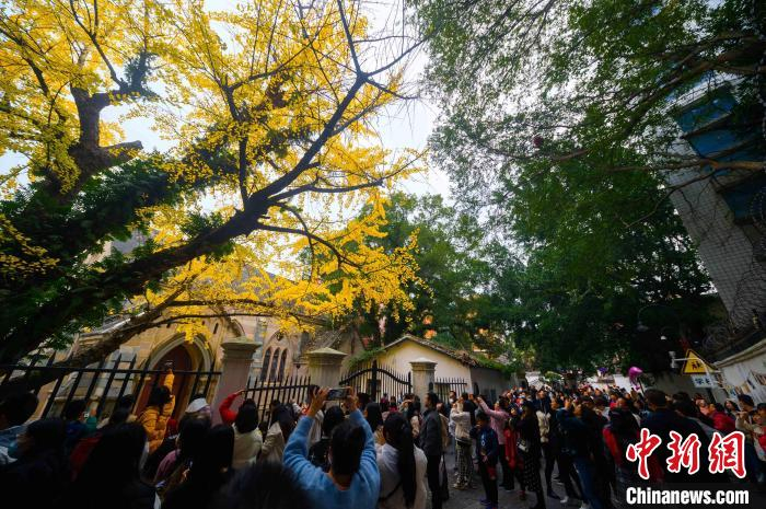 原标题:福州:石厝教堂挂满金黄 百年银杏冬日"绽放"
