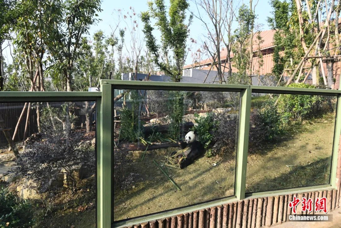 搬新家后的“滚滚”。安源 摄建成后的扩建区还将拥有一个坐落于探索密林区域的熊猫美术馆,展厅面积约1700平方米,届时将会为广大游客带来多样化、高质量的大熊猫文化艺术展览活动。成都熊猫基地也将在熊猫剧院推出原创主题公益音乐剧。