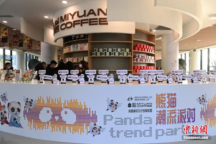园区内的熊猫主题咖啡馆。安源 摄若是想要休息一下,你可以选择坐在玻璃墙体结构的熊猫全景餐厅内,中间不仅设有咖啡吧台,餐厅内还可同时看到旭日馆、映日馆、云日馆、胜日馆大熊猫活动场景,在享用美食、品味咖啡的同时,360°观看大熊猫,是不是想想都感觉很棒!
