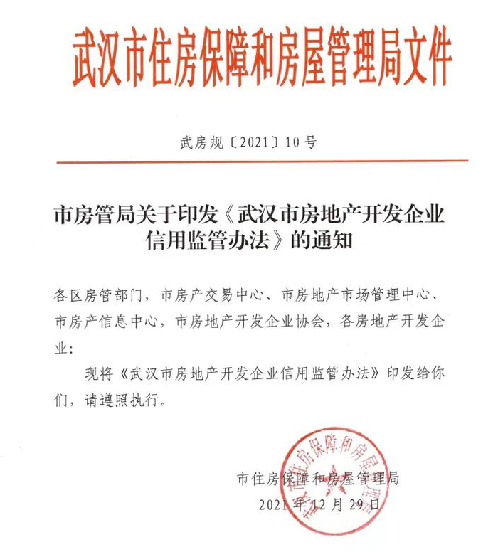为进一步加强对房地产开发企业的信用监管力度,湖北省武汉市将实施新的《武汉市房地产开发企业信用监管办法》(下称“新办法”)。与原办法相比,新办法列举的信用信息扣分情形共65项,比旧办法多出18项。