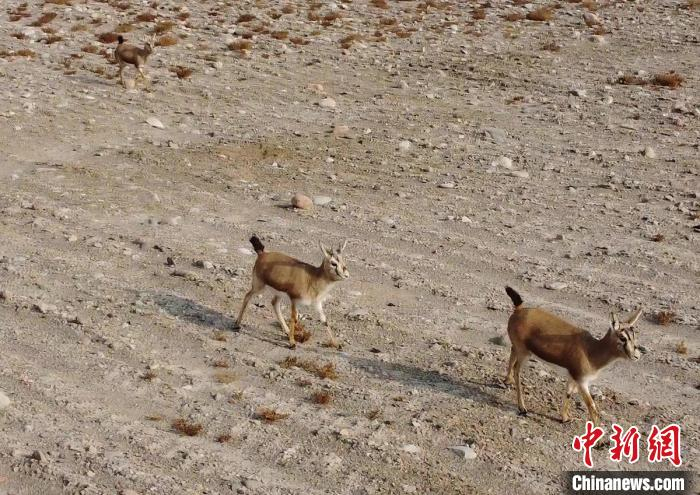 中新网乌鲁木齐1月5日电 (邵凡琦 路纲)近日,新疆中部的焉耆县霍拉山脚下,二十余只鹅喉羚正悠闲嬉戏,它们时而成群结队前行,时而三五结伴嬉戏打闹、驻足凝望,有时形成小团体嬉戏奔跑,有时悠闲觅食,憨态可掬。