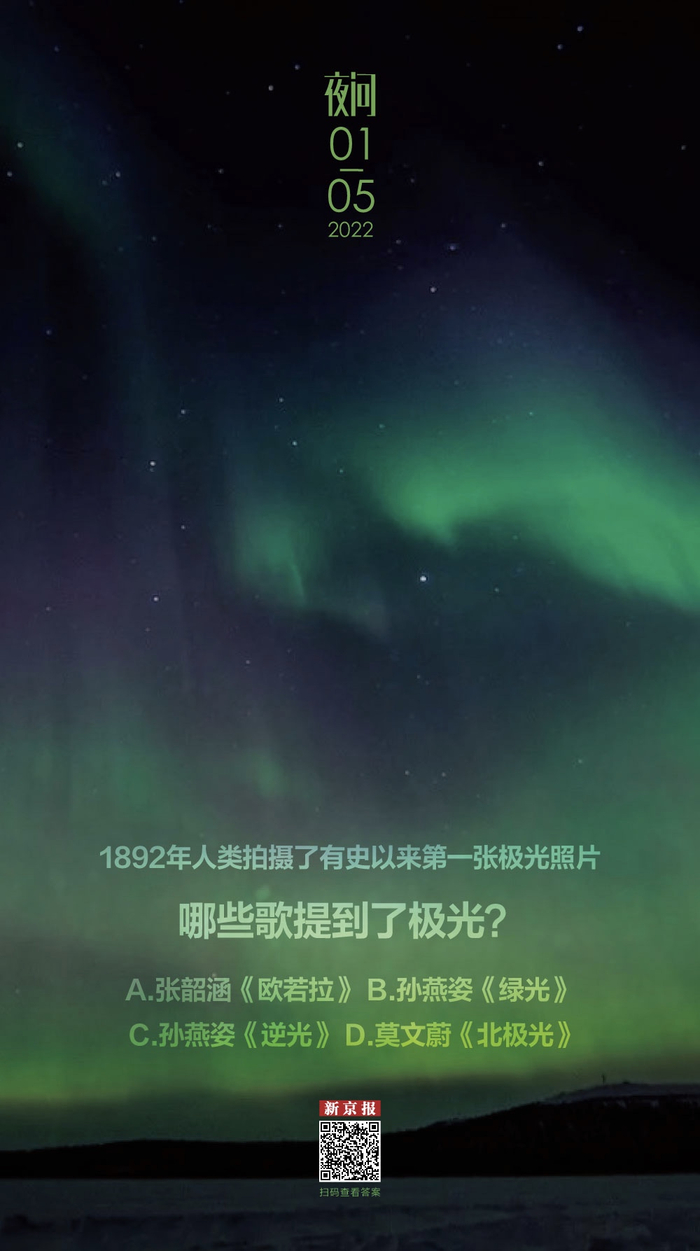 莫文蔚的粤语歌《北极光》同样讲的是极光,它的国语版本大家更熟悉,就是那首《盛夏的果实》。从《北极光》歌词“极地尽处有我靠的岸”可以确定歌曲发生的地点,歌词讲述了不断追寻极光的过程,它像爱情一样难以捉摸。